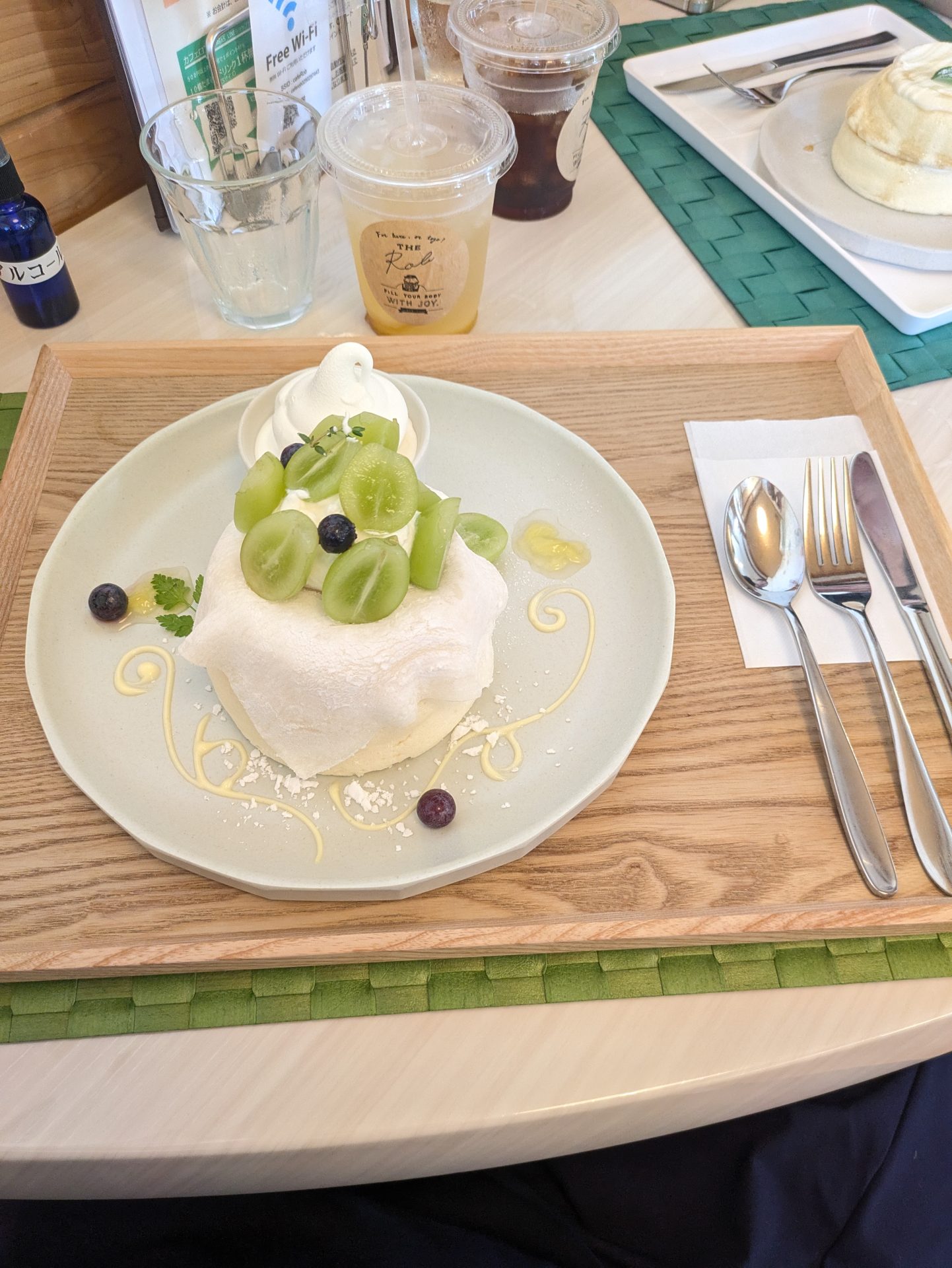 季節のマスカットや求肥とソフトクリームがのったパンケーキは、まるで雪見だいふくのようなやさしい味わいで、秋らしい贅沢なひとときを楽しめました。