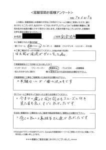 A. 施工前におおよその完了時間をたずねましたが、その予定時間よりも早く終えたことは助かりました。 また設置後の操作説明もわかりやすかったです。