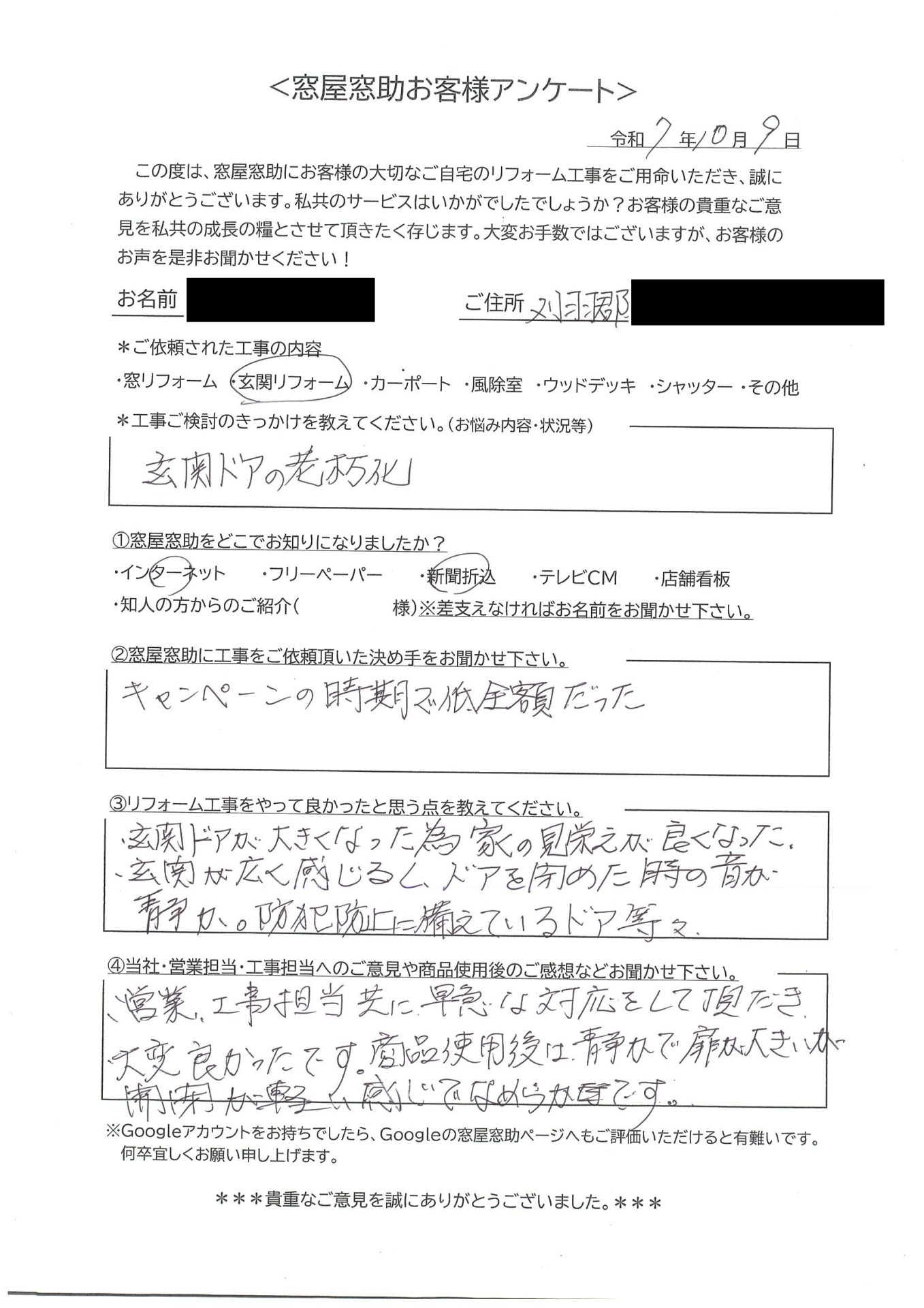 刈羽郡 YKKAPドアリモ施工後のお客様の声~ キャンペーンの時期で・・・
