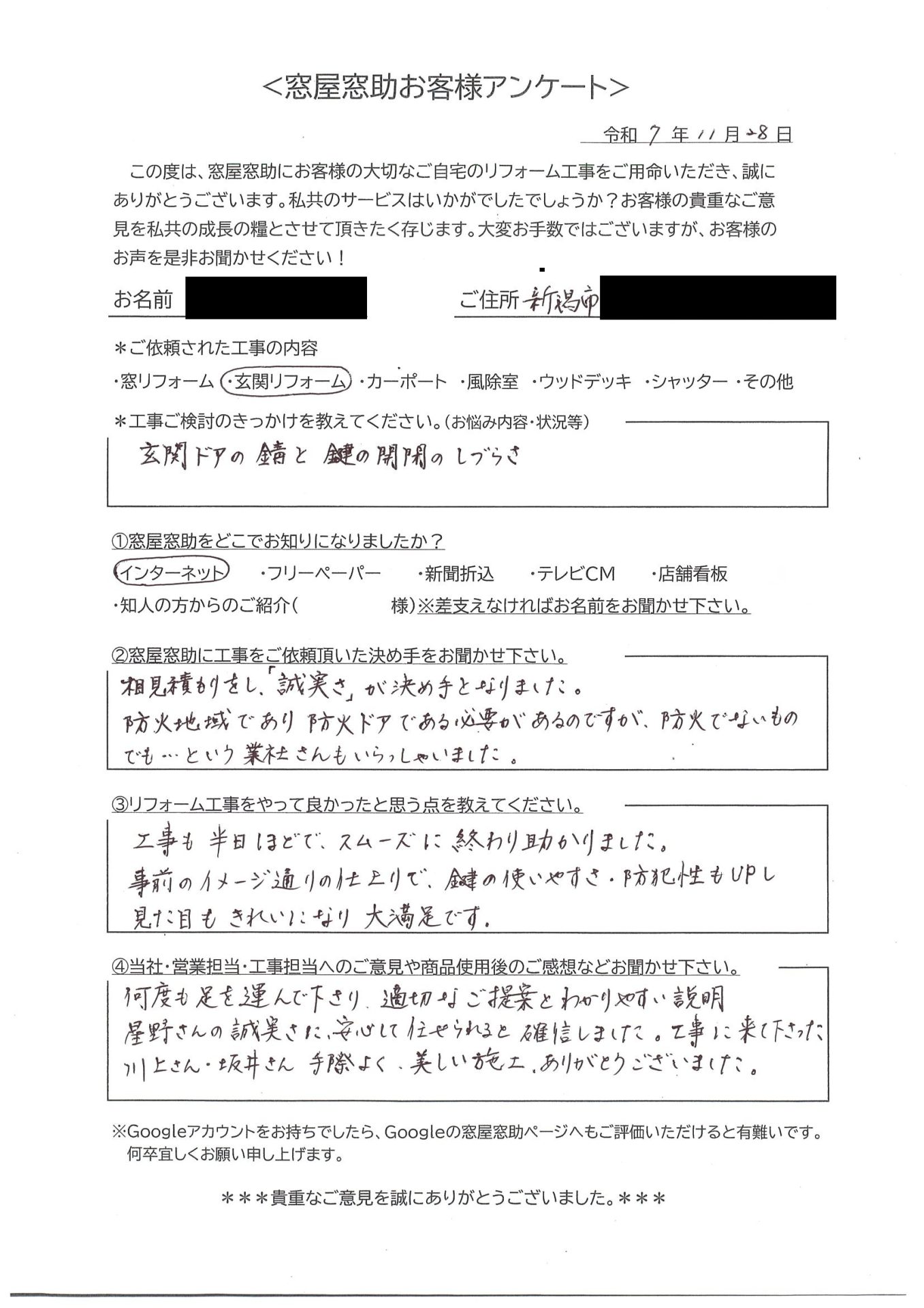 新潟市 YKKAPドアリモ施工後のお客様の声~何度も足を運んで・・・